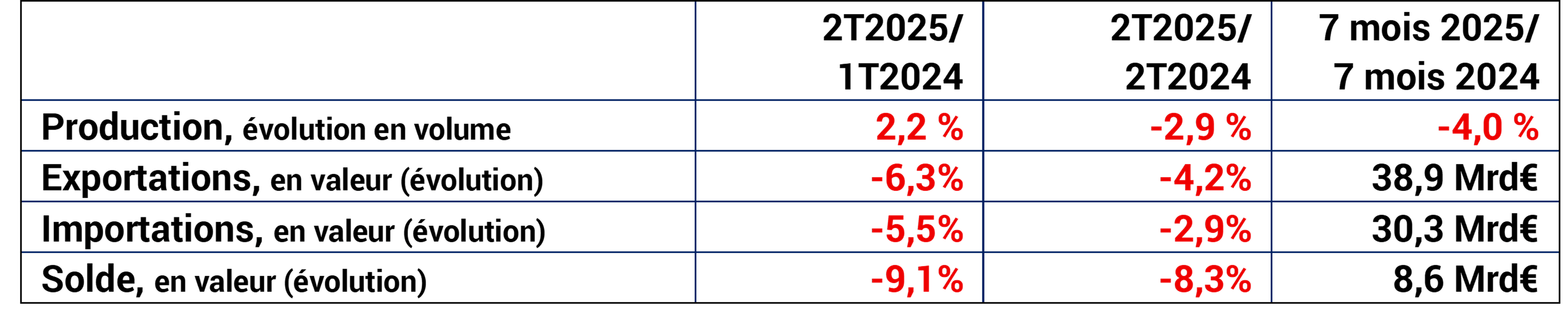 En France, l’activité a affiché un plus fort repli que la moyenne européenne, à -5,4 % sur un an en cumul à fin juillet (-4,0% y compris chimie fine pharmaceutique) versus -2,8 % niveau UE. Tous les secteurs sont passés dans le rouge – yc les parfums et cosmétiques.