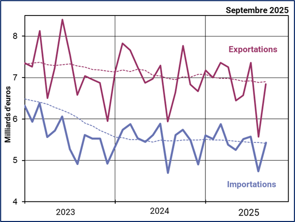 Les marchés extérieurs de la Chimie en France sont en perte de vitesse. Le secteur a ainsi généré un excédent commercial en baisse par rapport à l’an dernier, à 12,5 milliards d’euros sur neuf mois en 2025 (vs 14 milliards en 2024), à cause d’un recul des exportations (-3,2 % en valeur) supérieur à celui des importations (-1,2 %).